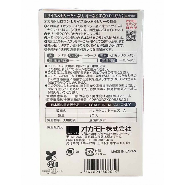 Описание Полиуретановые презервативы OKAMOTO Zero One 0.01 Rich Jelly Large size 3 шт